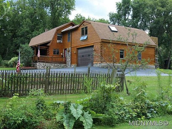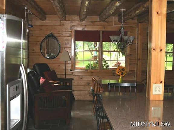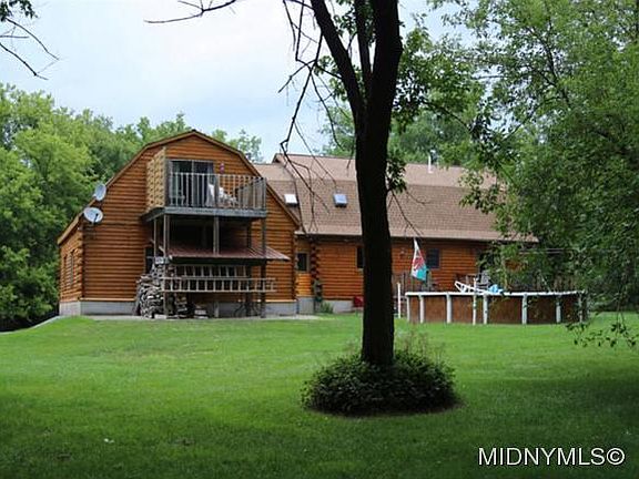Pride of ownership radiates throughout this meticulous 2,600 sq.ft. log home! Living room w/vaulted wood ceiling and cozy wood stove, beautiful hickory kitchen w/lg breakfast bar and stainless appliances, master suite w/whirlpool tub and balcony-deck, large family room w/fireplace and much more... This lovely home is situated on 5.6 country acres and is close to all village amenities!