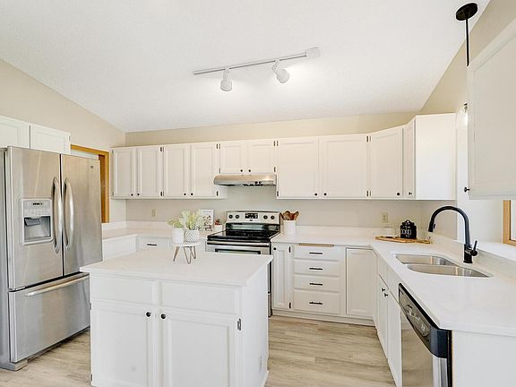 **SELLERS ACCEPTED SIGHT UNSEEN OFFER** Demand Lakeville location near Meadows Park, Lake Marion/Antler's Park & all the shops/restaurants downtown Lakeville has to offer! Remodeled throughout! Recent updates include: New cement board & stone on front exterior, New garage door coming 6/29, entire exterior & deck painted, New Furnace/AC, New Washer/Dryer, New front door, Side exterior door, LL patio door, Front & back paver stoops, Enameled kitchen cabinets & new hardware, quartz countertops, bathrooms include new vanities, lighting, tile surround shower/tub. New light fixtures, carpet & LVP throughout, finished 4th bedroom in LL. Like new! Won't last long!