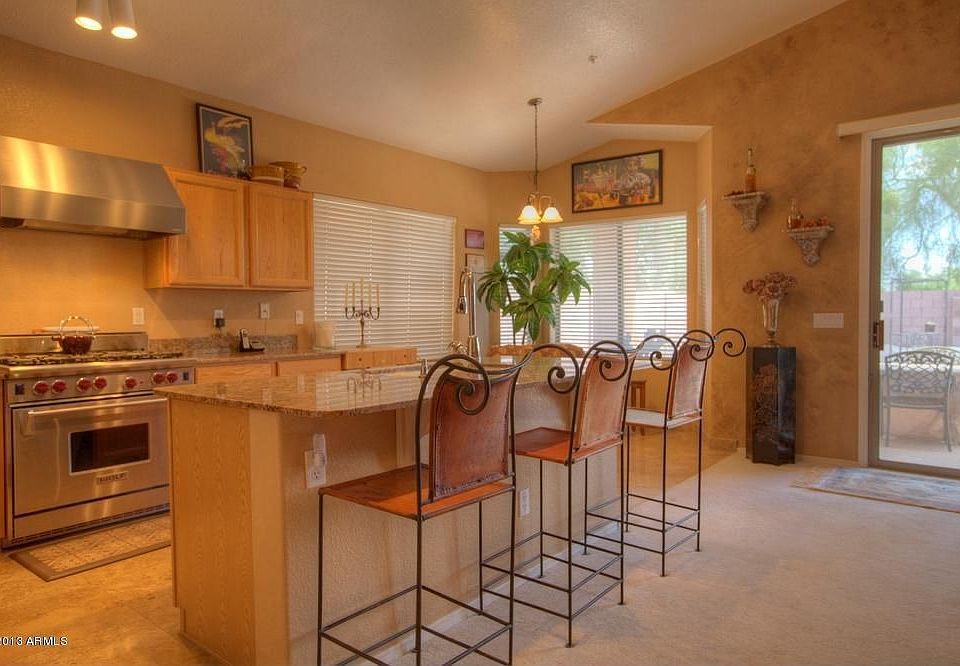 An expanded patio and backyard gazebo makes entertaining easy in this 4 bedroom home with a split floor plan located on a corner lot at the end of a cul-de-sac! Backing to natural open space to the south and west gives this home extra charm & privacy. Inside you will be drawn in by the custom paint colors throughout, vaulted ceilings, 18 inch travertine flooring, decorative archways with tumbled travertine tile, inviting family room fireplace with tumbled travertine tiles - all of which compliment the remodeled kitchen that includes oak cabinets, granite countertops, 6 burner Wolfe gas stove, side by side refrigerator with icemaker and bottom freezer, walk in pantry and center island with breakfast bar and executive chef sink. Spacious master bedroom has a bay window and the master bath