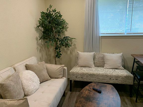 This FULLY FURNISHED 2 bedroom 1 bath 1 car garage unit is part of a duplex. The unit is in the back. ALL UTILITIES & LAWN MAINTENANCE ARE INCLUDED. The living area is cozy, warm and inviting, creating the perfect atmosphere for both relaxation and entertainment. The kitchen is equipped with newer appliances, and the unit comes with a refrigerator as well as a washer and dryer. It also features a large private fenced yard that's great for relaxing, entertaining and pets. The property is in a nice quiet neighborhood and is available for a month-to-month lease or up to 12 months. Schedule a viewing today and experience the privacy, comfort and convenience this property has to offer.