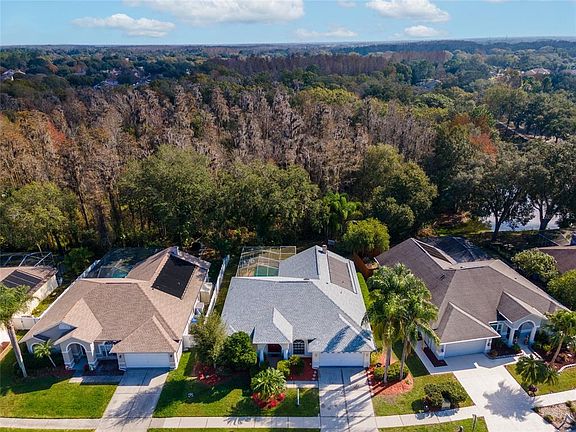 No CDD and low HOA fees on this single-family pool home with over 2400 sq. ft and gorgeous conservation views. This home has three bedrooms, 2 bathrooms and a 2-car garage. Formal living and dining area, family room, wood burning fireplace, split bedrooms floor plan, open kitchen and breakfast area. Screened pool area with outdoor kitchen perfect for entertainment. This home was designed to enjoy the views; from the family room, breakfast area, living room and master bedroom. This open floor plan with high ceilings offers a lot of natural light and the kitchen even has a skylight. Master suite offers a large walk-in closet, his and hers vanities, shower with separate garden tub and french doors to the pool area. New roof with new solar panels for pool in 2020, AC replaced in 2016, new pool pump and filter in 2018, pool was resurfaced in 2016, new water heater in 2016. This home is located in the Pebble Creek community, in the New Tampa area with easy access to I-75, hospitals, schools and shopping.