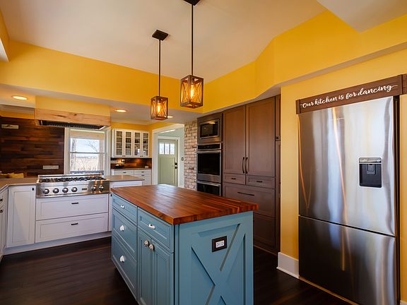 Welcome to this charming 5 bedroom farmhouse that has been completely updated~ nothing to do but move in. Enjoy your morning coffee on the remodeled front porch overlooking the picturesque outdoor space. Inside, this stunning home features gleaming hardwood flooring, neutral paint throughout, and tons of natural lighting. The dining room showcases an exposed wood beam, crown molding, custom locker system, and plenty of space for entertaining. The NEW kitchen boasts, 42 inch cabinetry, stone backsplash, island, engineered hardwood flooring, state of the art stainless steel appliances including built-in ovens and a separate cooktop, farmhouse sink, and an eat-in area with breakfast nook and built-in hutch. Spacious living room includes crown molding, fireplace with new wood burning fireplace insert, and custom barn door. Mud/laundry room with wood accent ceiling, laundry sink, and cabinets for storage. Two bedrooms and an updated full bath with double sinks complete the first floor. Upstairs features a primary bedroom with tray ceiling, two additional bedrooms, and a completely redone full bath with double sinks and a soaking tub. The finished walkout basement adds even more living space including a family room with fireplace, workout room, and an office. Step into your own own outdoor oasis including a multi-tier brick paver patio, custom firepit area with seating, sheds for storage, milk house that is being used as a shed, pond/water feature, fenced in garden with gate, playset, apple trees, a sway bridge over the Kishwaukee River, and serene views of the countryside. NEW within the last 5 years: Generac whole home generator, James Hardie cement board siding, gutters, soffits, all new windows, two AC units and added duct system, furnace, tankless water heater, drinking water treatment system, well and pump, asphalt driveway, exterior doors, upgraded plumbing and electrical, house wired for Cat 6 and two level Access Points mesh network, and water irrigation system. Enjoy tranquil country living while still being near modern conveniences such as shopping, restaurants, and parks. Don't miss your chance to make this dream home yours!
