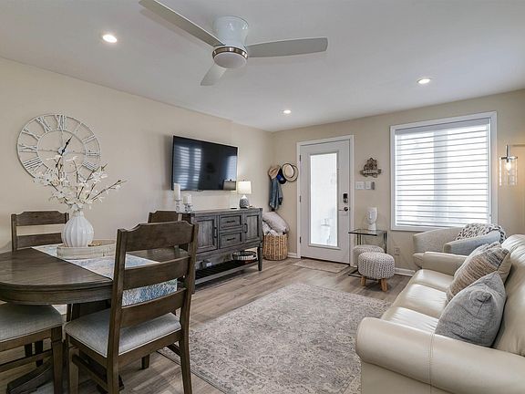 Discover the perfect beach getaway with this beautifully upgraded 2-bedroom, 2-bathroom condo, just one block from the beach with off-street parking. Ideally located within walking distance to all that Margate has to offer—popular restaurants, boutiques, creameries, shopping, and the bagel store—this home offers both a prime location and modern comfort. A charming front porch with ceiling fan welcomes you, and inside, the open floorplan creates a spacious, inviting atmosphere, perfect for entertaining or relaxing. The condo features upgraded vinyl flooring throughout, new windows (except in the middle bedroom), and custom Silhouette blinds. The living area is enhanced by a new ceiling fan and a 55" Smart TV, while the master bedroom includes a California closet upgrade. Recent building improvements, including a new roof, re-stucco, and updated exterior lighting, ensure long-lasting quality and peace of mind. Pet-friendly and thoughtfully designed, this home also offers the convenience of a Ring doorbell, keyless entry, and a new exterior electrical panel. With all these upgrades, this condo is ready to provide a stylish and comfortable beachside lifestyle.