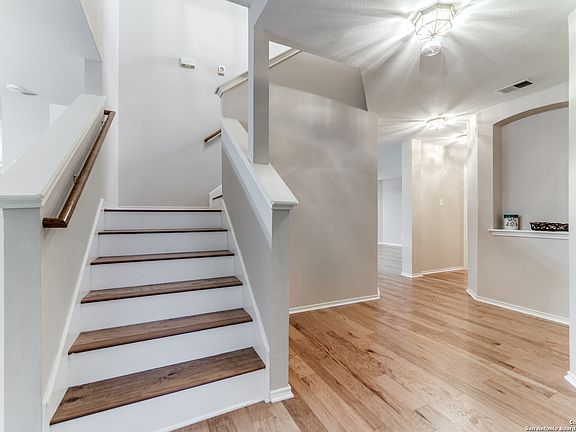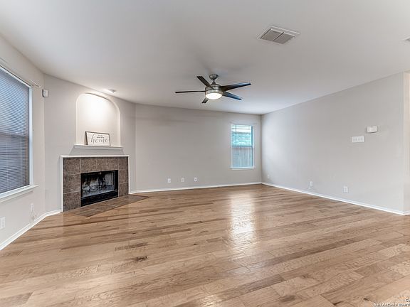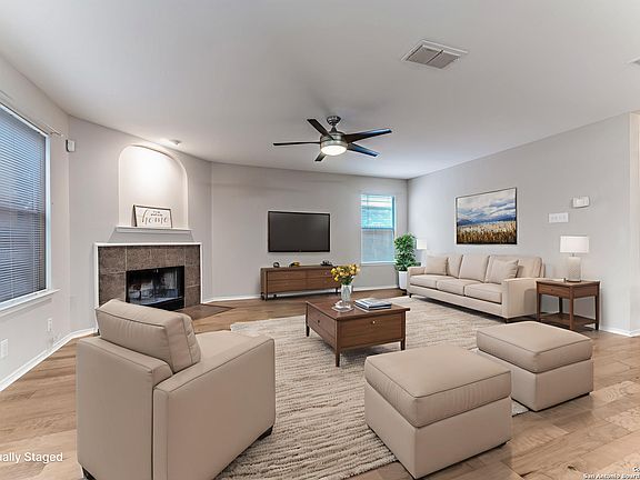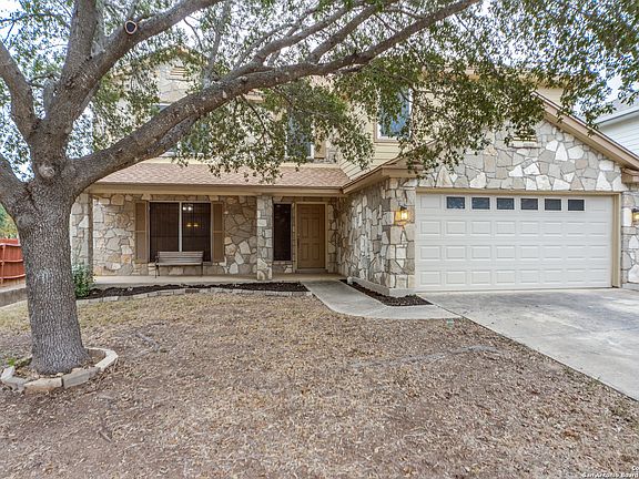 There's no place like H... elotes! Your new home is a 2796 sq ft, 3 bedroom, 2.5 bath with a brand-new roof located in the gated community of Helotes Crossing. Downstairs you will enjoy an open concept floor plan where the updated kitchen, living room and breakfast nook flow seamlessly together creating the ideal gathering spot for family, holidays and entertaining. A formal dining and living room also occupy the main level. Retreat upstairs to the spacious primary suite where everything is big! The primary bedroom and bathroom are both large, and the closet is bigger than many folk's bedrooms! Two additional bedrooms, a full bath and a game room/media room/loft occupy the remaining upstairs footage. Additional home features include engineered hardwood flooring (entryway, living room and stairway) and a wood burning fireplace. Updates include a kitchen remodel (2017) to include granite countertops, stainless appliances and an induction range; garage door (2016), Rheem 50-gal water heater (2017) and dimensional shingle roof (2025). Neighborhood amenities include controlled access and a community park with a pavilion, swing set, playground and basketball court.