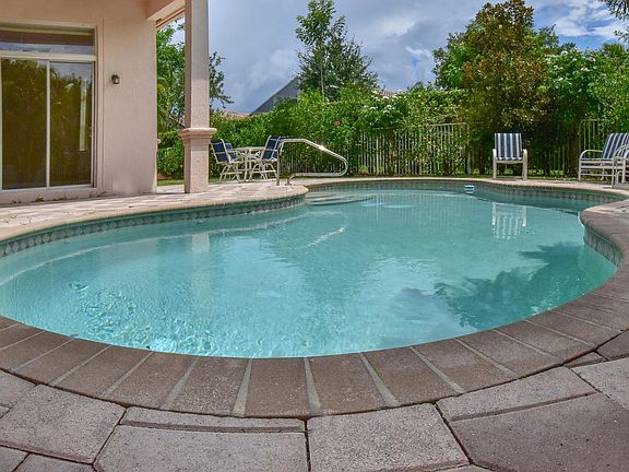 Great light in this south facing, open floor plan home. Located on a quiet cul-de-sac in one of Palm Beach Counties finest communities. Chef's gourmet kitchen with granite counters, tumble stone backsplash, all high end stainless steel appliances including double oven and range. Kitchen has bar top seating, breakfast nook and opens to TV room. Great room opens to gorgeous pool and very private backyard. Entertain al fresco in the oversized, screened patio area. King sized master has his and hers closets and sinks and private water closet. Please click on the supplement for a full description of this luxury home..
