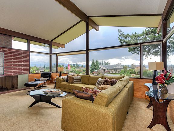Notable Mid-Century Modern Architecture designed by award-winning Mithun & Nesland Architects, famous for their modern, detailed designs. In excellent condition, this unaltered gem sits in Bellevue's sought-after Vuecrest neighborhood. Unique home on an exceptionally large lot on Hilltop Road. Original interiors feature exposed beams, clean lines, brick accents, view-oriented windows, and period details. Offers 180-degree views of Lake Washington, Olympics, Cascade Mountains, both Bellevue and Seattle skylines, and Bellevue Schools. High walk Score! Shops, restaurants all within a few blocks! Renter is responsible for all utilities. Proof of income and credit check for all applicants.