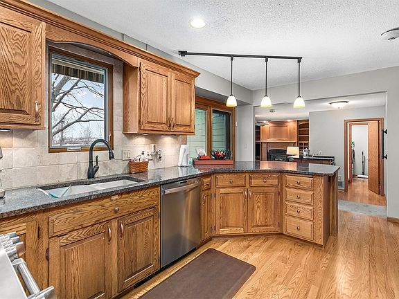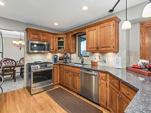 Welcome to this beautifully updated 3-bedroom, 3-bathroom home that seamlessly blends timeless craftsmanship with a few modern touches. As you step inside, you’ll immediately notice the attention to detail throughout, from the gorgeous oak hardwood floors to the stunning woodwork that enhances every room. The spacious family room is centered around a cozy fireplace with custom built-in shelves, making it the perfect spot for relaxation. Adjacent to the living room, you’ll find a stylish wet bar—perfect for entertaining guests and creating the ideal atmosphere for social gatherings. Granite countertops are featured throughout the home, providing a sleek and cohesive design. The remodeled basement offers additional living space with a dry bar, tile flooring, and a dedicated office area—ideal for work or play. Upstairs, the master suite features a private balcony, perfect for morning coffee or evening sunsets, and the remodeled walk-in shower and tile floor add a touch of luxury to the en-suite bathroom. Outside, the expansive patio is complete with a firepit, providing a welcoming space for gatherings or quiet evenings. Located in a desirable neighborhood, this home offers comfort, style, and functionality, all with the benefit of thoughtful, high-end updates. Don’t miss the chance to make it yours!