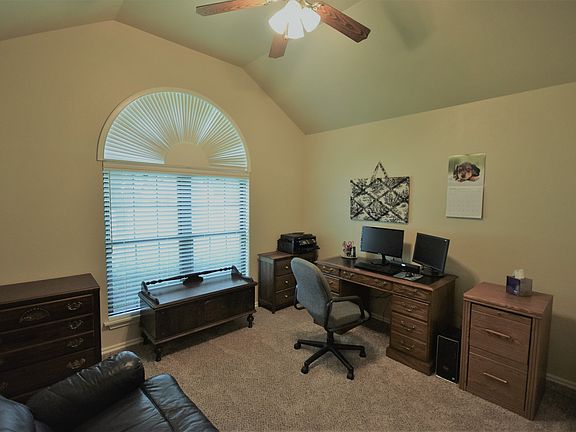Beautifully maintained 3 bedrooms AND study (with closet), 2 baths and 3 car garage with STORM SHELTER. Kitchen UPDATED with exotic GRANITE and tumbled MARBLE backsplash, oversized dishwasher, CONVECTION oven option and built-in microwave. Laundry Room features with GRANITE countertops. HVAC replaced (2013) & NEW H2O tank (2018). Master Bath has Jacuzzi soaking tub, walk through Australian closet and UPDATES including granite countertop, double sinks, CUSTOM BUILT storage tower, newly tiled shower, backsplash (with accents), HEATED FLOOR and a chandelier. Guest Bath updated with granite, vanity with multiple drawers at each end (kids would love having their own set of drawers!), fixtures & floor. Roof/gutters in 2016 and NEW carpet 6/15/18. Gas log fireplace, 10' ceilings, tons of STORAGE, HUGE kitchen island, tiled back deck, sprinkler system, owned alarm system, NEW garage door for 2 car side. Wired for CAT5/2â WOOD BLINDS. All of this on a quiet cul-de-sac with no HOA.