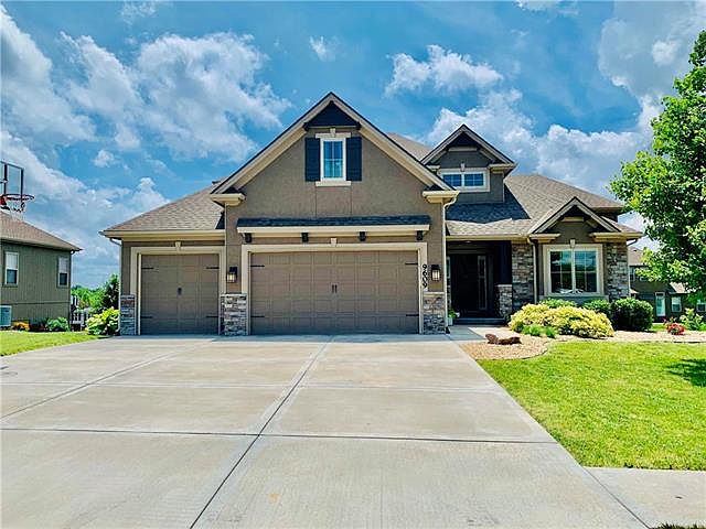 Beautiful 1.5 Story,w/ vaulted ceilings,5 br,3.5 bath,3-car attached garage in Liberty School District. Easy access to highways, shopping and hospitals.Granite, hardwoods, tile, walk-in closets, pantry, spacious open kitchen, impressive curved staircase at entry leads to 2nd family room loft. Curved staircase to lower level that host a walkout basement which provides rec area, or could be finished, stubbed for bathroom.Large fenced backyard. Neighborhood has pool & lake privileges.