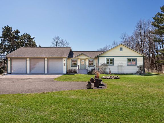 Bring your ATVs, boats, fishing poles, jet skis, and golf clubs—this home is ready for all the fun you can handle, year-round! With 125 feet of breathtaking waterfront on the Apple River Flowage, this waterfront home is the start of your adventure! This fantastic 3-bedroom, 2-bathroom home is a one-level walk-out, so you can enjoy all the views without ever breaking a sweat. Inside, you’ll find a bright, open-concept layout with soaring vaulted ceilings and epic two-story windows to take in the stunning views of the river. You’ll regularly spot eagles soaring overhead, swans gliding along the water, and deer and other wildlife wandering through your property. You’ve got a tee box to work on your golf swing, an oversized heated garage with workshop, AND a 10x20 storage shed for all your gear. Plus, with 3.71 acres of space, there’s plenty of room to explore, play, and make memories. Live your best life on the Apple River Flowage—your perfect escape is waiting! Meticulously maintained and mechanicals are newer. Pre-inspected for you! Don’t miss the VIDEO!!