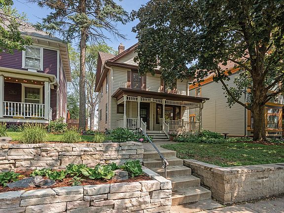 Situated on a gorgeous tree-lined street, this charming turn-of-the century home has great curb appeal and has been lovingly updated throughout. The main floor features a classic front porch, welcoming foyer, nine-foot ceilings, original woodwork, including beautiful wood columns, a built-in buffet and hardwood floors, a renovated kitchen with quartz countertops, tiled backsplash, crown molding, and stainless steel appliances, formal dining room with a large picture window overlooking the backyard, a half bath with marble floor, and a fantastic screen porch. Upstairs you'll find four bedrooms with refinished hardwood floors, updated full bath, and access to the bright, spacious family room on the third floor. The large, fully-fenced backyard is home to many perennials and leads to a two-stall garage. Updated electrical, insulation, radon mitigation, mini-split air conditioning, and a new roof in 2024. Amazing location only two blocks to Summit Avenue and three blocks to great shopping and restaurants on Grand Avenue.