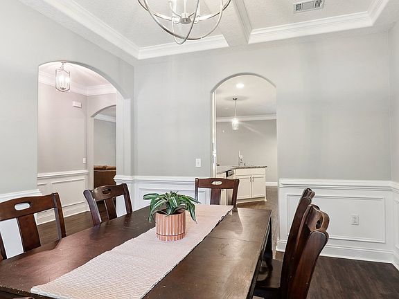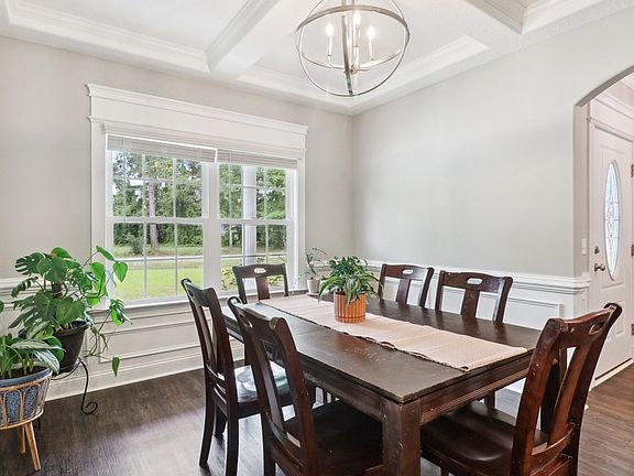 Don't wait to check out this Beautifully maintained JM Allen Home on 1 acre with NO HOA! The spacious covered porch & curb appeal welcome you! Upon entry you will note the wainscoting and extensive trim work. Warm LVP flows throughout the main living areas. Off entry you will find a spacious formal dining room/flex room with coffered ceilings. The kitchen boasts wood cabinetry, SS appliances, granite counters, tile back splash, & overlooks the living room (with gas fireplace) & the breakfast area. This is as split bedroom floor plan with Primary bedroom off the kitchen next to the huge laundry room!! Room has tray ceilings & TWO walk-in closets. The en-suite bath has a garden tub, dual vanities, tile floors & separate shower. The other side of the home has a full bath with tile floors & cultured marble counters. The 3 secondary bedrooms are very spacious! Out back you will find an enormous covered back porch pre-wiring for TV mount & a huge privacy fenced back yard!!