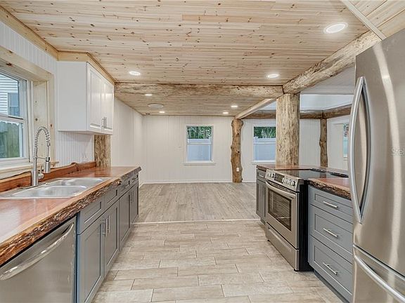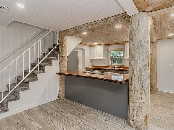 A unique, 2-story home in Winter Haven near Lake Elbert! The interior of this home features live edge wood countertops, natural wood trim, brand new stainless steel appliances, new cabinets, updated bathrooms with new cabinets, countertops and tile, brand new A/C, new luxury vinyl plank flooring and new carpet, new light fixtures, and fresh paint. The exterior of this home features a covered front porch, newer windows, a fenced-in yard, new and mature landscaping, and fresh paint.