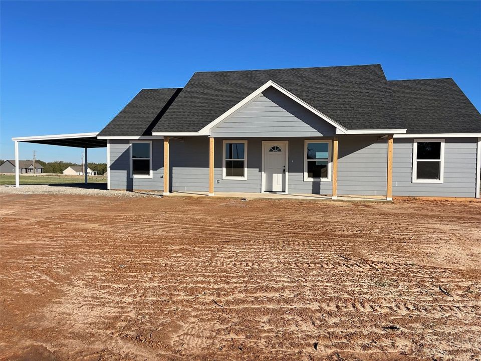 This is a new construction 3 bedroom 2 bath home in a new subdivision. Home has an open floorplan. The kitchen has white painted cabinets, granite counters, stainless steel appliances. and a large eat at bar. The master bedroom has his and her sinks a tub shower combo with tile. There is custom tile throughout house and carpet in bedrooms. There is a large back yard, and is close to schools.