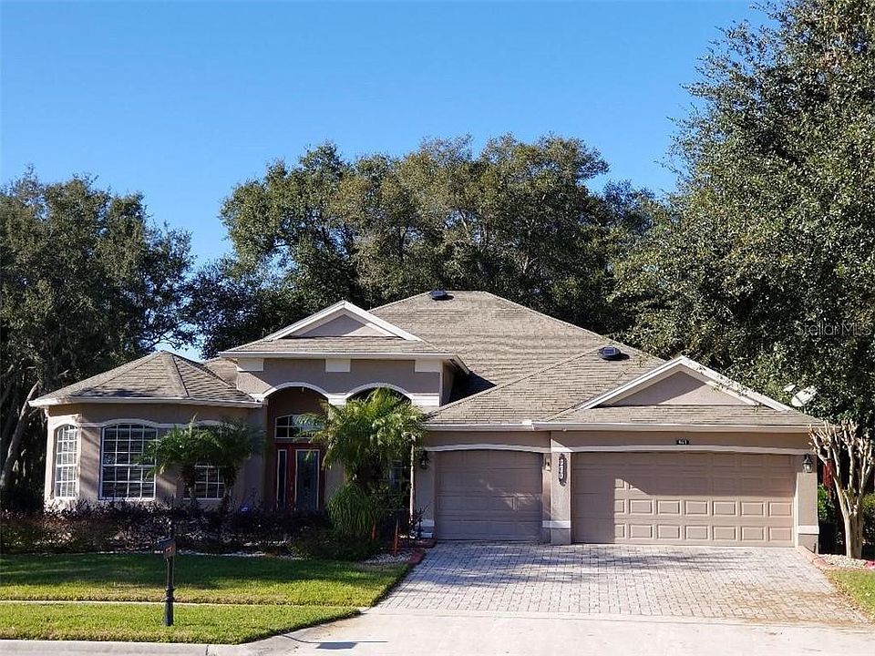 Stunning Lennar Pool Home Featuring a PRIVATE Home Office. Tons of extras, upgrades & custom features. The property is situated on a prime lot - offering water view from the front & green view from the rear! Large covered paver porch and extended patio surround the heated pool & spa all under screen enclosure - step out onto the huge outdoor paver patio and enjoy your private shaded oasis all secured with aluminum fencing. The open floorplan and vaulted tray ceilings give this home tons of natural light. Custom built-ins throughout home - home office, 3 closets & living room - are not only functional but add designer detail. Huge master suite features tray ceilings, a separate sitting area & opens to pool area. Oversized garage also offers lots of storage space & custom built-ins for organization. Great location - peaceful setting but minutes to major highways, great schools, outdoor recreation, shopping & dining --New Publix and schools coming. Upgrades & Features include: pool pump replaced 2 years, pool heater 5 years, pool finish May 2010, pre-wired for alarm, pool screen 2 years, solar attic fan & ventilation, nest thermostat, water heater 2 years, ac two units- one unit replaced in/out 2018 & 2nd unit serviced 2020, surround sound