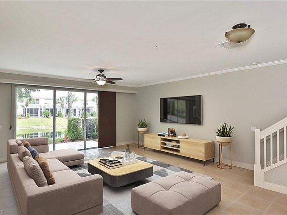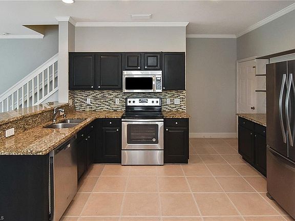 Home Sweet Home! That's what you can call this SPACIOUS, UPDATED and OPEN floorplan beauty on a rarely available end unit in the heart of SW Florida! Park your toys in the 2 CAR GARAGE or leave it on your oversized paver driveway. As you walk through your front door you are greeted with a TILED FLOOR, FRESHLY PAINTED INTERIOR, NEW BASEBOARDS, NEW CUSTOM WINDOW TREATMENTS and NEW CROWN MOLDING for an added taste of luxury! Your CUSTOM kitchen boasts a COFFEE BAR along with its GRANITE COUNTERTOPS, STAINLESS STEEL APPLIANCES and DARK WALNUT STAINED CABINETS! Relax and take some fresh air on your open lanai while the calmness of your private lake embraces you with its therapeutic effects. Let your UPDATED flight of stairs take you to your split bedroom floorplan; hardwood flooring in the bedrooms and tile flooring in the wet areas. With a huge walk-in closet and a view of the lake, consider your master suite your private tropical oasis! BRAND NEW 16 SEER A/C SYSTEM recently installed; you'll love those lower electric bills! Pinehurst at Stratford Place is conveniently located off of Exit 107, a stones throw away from the all dining, shopping and entertainment Naples has to offer!