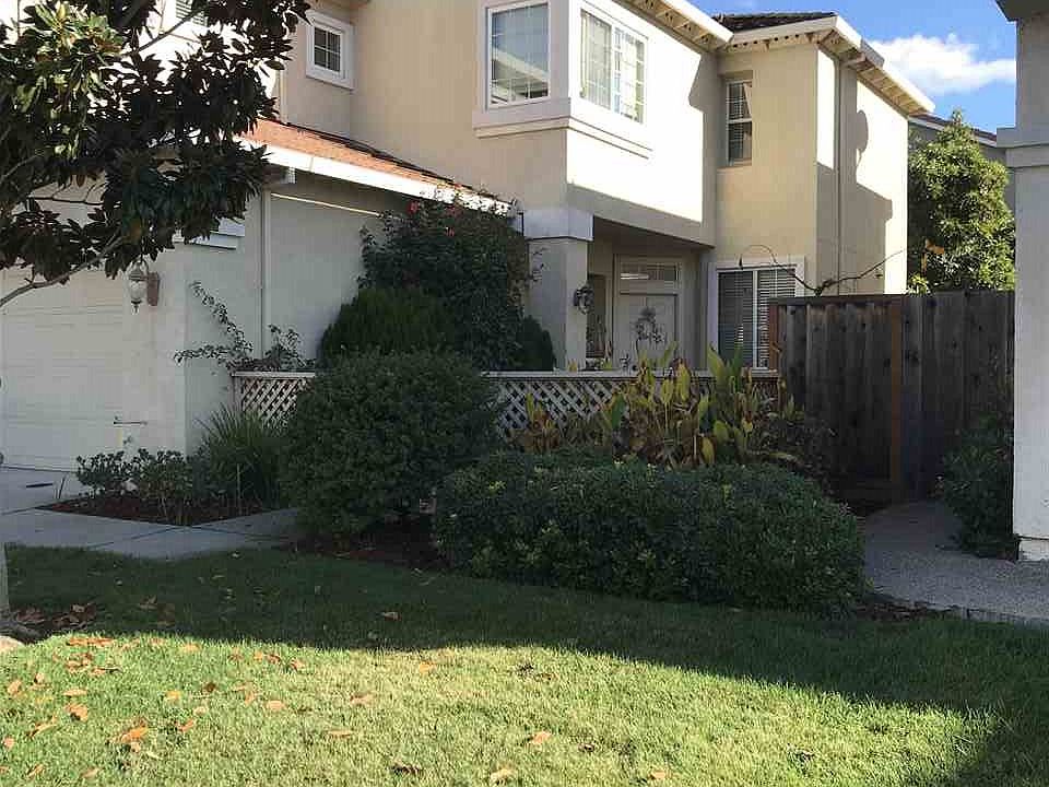 This home is a diamond in the rough, needs a little TLC - Paint would do wonders! Great bones; Tile floor, Gas Cooktop, granite counter tops in kitchen, garden window, stainless steel appliances, recessed lighting, eat-in kitchen, 15 ft ceilings provides much natural light. Wood burning fireplace, Beautiful hardwood floors throughout the upstairs, updated baseboards, six-panel doors. Master bath has double sinks, sunken tub, Walk-in-closets, separate toilet area. Dual Pane windows, Flagstone Patio in rear yard, newer fence, lemon tree, nicely landscaped low maintenance rear yard. Security system with motion detector. Great price, great home!