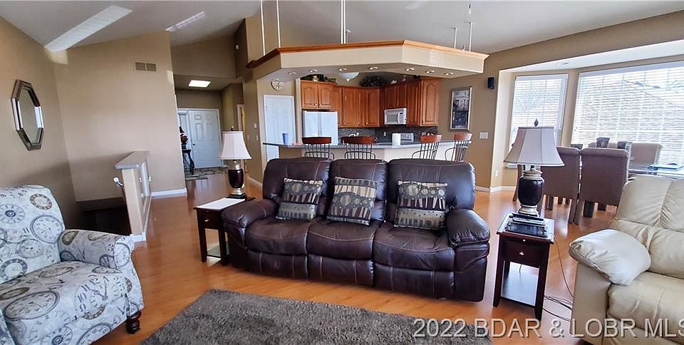 Right in the heart of Osage Beach is where you will find this fantastic villa with a boat slip w/hoist & HUGE Man Cave Garage all Included! Centrally located right in the Lake of the Ozarks and on the quieter Grand Glaize Arm of the lake is where you can enjoy life. This villa is spotless! The heated 14x36 Man Cave with 10 ft door and high ceilings is a rare find with a villa. 3 bedrooms, 3 baths, main level living (washer/dryer hook ups both up and downstairs) Enjoy a lake view from your screened in deck. A wall of windows makes the lower level light and bright. Spend quality family time in the family room, dining/game area. 8 ft counter and wet bar. Walk out to a large patio. Boat slip and hoist included! The complex takes care of the mowing and will shovel the snow to your door in the winter. This villa is a true gem!
