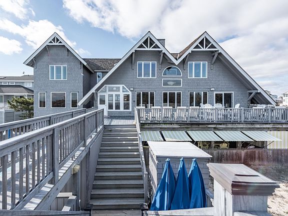 Oceanfront living is the best here in this one-of-a-kind home. It is distinctive from the moment it greets you with its shingled siding, shingled roof and white picket fence front yard. Built in 1992 with an addition and remodeling completed in 2005, it offers the intimacy of a cottage, yet set within a sprawling amount of space. Breakers View has been gently used by numerous repeat renters and as a winter home for the sellers over the years. All available weeks are rented!! Meticulous detailing and care by the owner/builder. Enter into the mid level to the the beautiful and window-lined living area with hardwood flooring and a gas fireplace. This leads into the thoughtfully designed kitchen with ocean view, a generous amount of counter space and is extremely well equipped has lovely wood cabinets, 3 sinks and 2 dishwashers. The kitchen leads to the splendid dining room with custom table seating for 14 and offers ocean views. The main bedroom with en suite is located on this level as well. Off the kitchen is the screened porch, which leads to sun deck, beach and pool. The top level consists of 3 large bedrooms and 2 full baths. All bedrooms are large, but one is massive and perfect for a young family. The ground level has luxury vinyl tile throughout. There is one bedroom here with 4 single beds and en suite bathroom and there is a den as well. Outside you will find a covered & shuttered (a nod to the old Nags Head Casino) get-a-way lounge area, half bath and hot tub space for welcome break from the sun or continued enjoyment rain or shine. The pool area is large with ample lounging space. A very private location & beach, in middle of block away from public walkways and luckily situated by 2 non-rentals to its South! Truly a must-see & special home! A full garage is a bonus. Owners have limited rentals to high season and offer at a low rate to their loyal guests - see rental projection for its likely possibility.