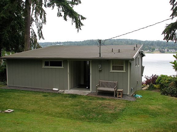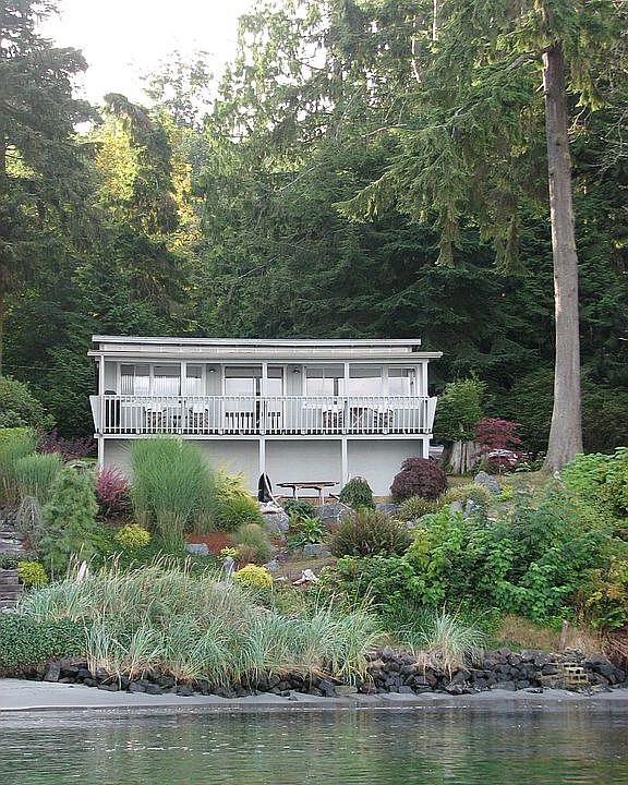 NO BANK!! SANDY BEACH!! Wonderful part-time, rental or full-time WATERFRONT residence. Beautiful wooded drive to cute cabin & beach. Lovely open sunny grounds surrounded w/ magnificent evergreens & flowering plants. Cabin on one side & total privacy on other side. Lots of windows and light. County says 2 bedroom but one does not have closet --could be added. Take your kayak off from property & enjoy trip around islands or even put out your crab pots. A way of life hard to find today.