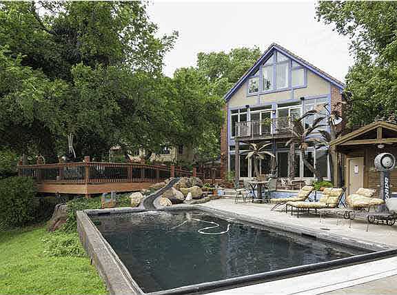 Amazing Arkansas River retreat in the city! Architect redesigned and updated vintage 3-story Tudor with a large addition facing the river. Owner gutted home adding new windows, 75 year tile roof, all new systems, heated pool, pool house, circle drive, floating river dock, breezeway to garage, composite deck, all new sliding glass doors and electric interior shades. Open plan, perfect for entertaining. Spacious living room opens to patio, deck, pool, pool house and river. Formal dining room is adjacent to living room and updated kitchen with granite counter tops, eating bar. Main floor family room has bay windows, fireplace with built-ins, beamed ceiling. Custom built-in shelves in living room and master bedroom are made from exotic Australian lacewood and highly figured maple. Huge master bedroom has office area with built-ins, sitting room area overlooking river with balcony patio. Third floor bedroom retreat has vaulted ceiling, private bath, stained glass windows, view of water. Closets galore throughout home. Beautiful wooded lot with greenhouse, custom designed wrought iron fencing. Home conveniently located near Botanica, Exploration Place, Wichita Art Museum, Riverside Park, Sim Park Municipal Golf Course and several downtown performing arts centers. Don't miss this rare opportunity for vacation living in the City.