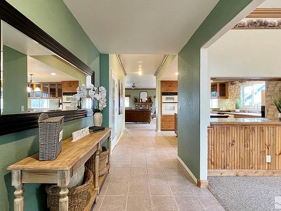 Sitting atop 7th hole of Sunridge Golf Course, this single level boasts views for miles. Sunrises and sunsets are amazing! Spacious and open floor plan capitalizes on capturing the views. Flexible front room most recently used as dining but may also serve as home office, sitting room, or conversion to 3rd bedroom. Large primary bed/bath with walk-in jetted tub. Outside there is ample RV parking, oversized and deep 2-car garage, flowering landscape, and comfortable covered patio. All of this and no HOA!