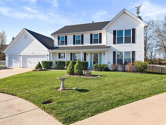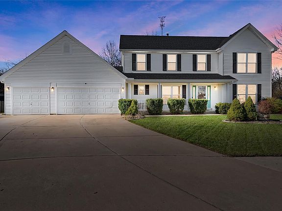 Don’t miss your chance to tour this gorgeous 4bd/2.5ba Wentzville home. This spacious property includes a large 3 car garage, nice sized fenced in back yard for your morning coffee and a cozy front porch. The interior of the home has plenty of bells and whistles, newer roof, siding, and HVAC. Enter through the foyer to the formal dining room, large office/living room featuring updated plush carpeting and laundry room with LVP. The beautiful kitchen is perfect for cooking family meals and includes a pull-up center island, ample counter space and is adjacent to the inviting breakfast room and great room with gleaming wood floors and bay windows, the upper-level features 3 guest bedrooms and an expansive master bedroom that includes a walk-in closet and ensuite, dual vanity, walk-in shower, and corner soaking tub. The unfinished basement offers plenty of storage and opportunities for home expansion. Unbeatable location, close to golf, parks, restaurants, shopping, and schools.
