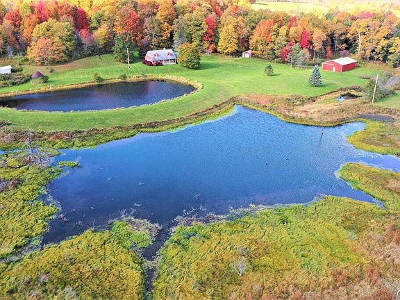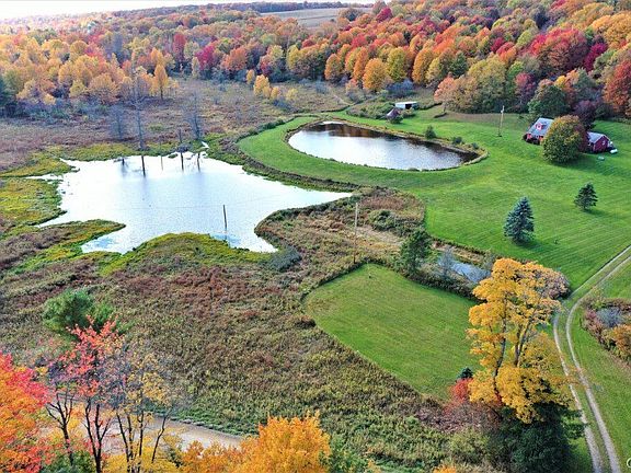 Entertain on the large back deck while watching all the wildlife that frequent the property. Surrounding the home is a large, manicured lawn with the ponds, and the remaining land consisting of overgrown meadows and hardwoods. The 60 x 37 pole barn located along the driveway has electricity and dirt floors providing a great space for storing equipment. A second detached garage has concrete floors and would make an excellent workshop. Perfect country location along a maintained gravel road surrounded by rolling hills and farmland.