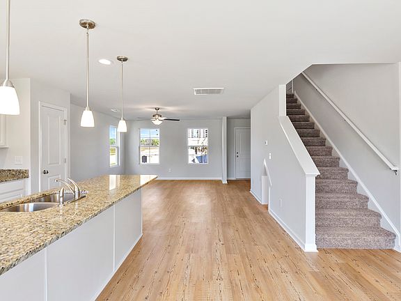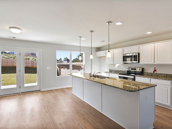 The new McDowell Plan is a five bedroom three bath open concept home with a guest suite on the main level. This home opens to a large family room with our beautiful Shaw woodgrain Accent Pine luxury vinyl plank flooring throughout the main living areas. The family room is open the kitchen area that has a huge island that is the focal point of this home. With White cabinets, rich thick granite countertops, stainless steel GE appliances, pantry and eat-in kitchen area it really a pretty space to entertain. Down the hall is a guest room with a full bath just off of the guest room. Upstairs are three great secondary bedrooms, a full bath with dual vanity, a loft area, and the master suite. The master features a vaulted ceiling, ceiling fan, separate tub and shower, and dual vanity. If this home has all the right spaces for your family call today!