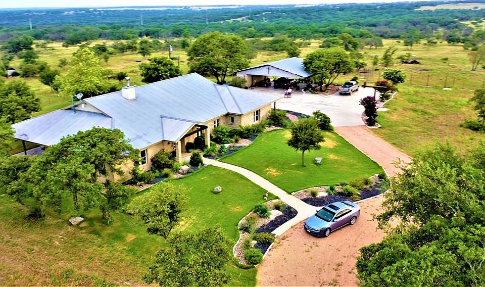 Between Harper and Fredericksburg 40 acres! One step into this beautiful, custom, 4,000 sf home and you will be greeted by a gorgeous stone fire place sitting in a spacious living room with open layout, including the dining area and kitchen. The stunning living room floor is comprised of cut limestone with inlays of ancient fossils scattered throughout. As you make your way through this four-bedroom, two bath, two half-bath home you will find luxuries such as an especially large pantry, an expansive game room and a sizeable mud/laundry room. With this estate sitting on a hilltop peak, you will be in awe of the spectacular panoramic views this home has to offer. Included on this 40-acre property is a large car port with great potential to serve as an additional entertaining area.
