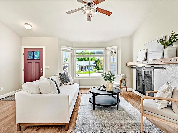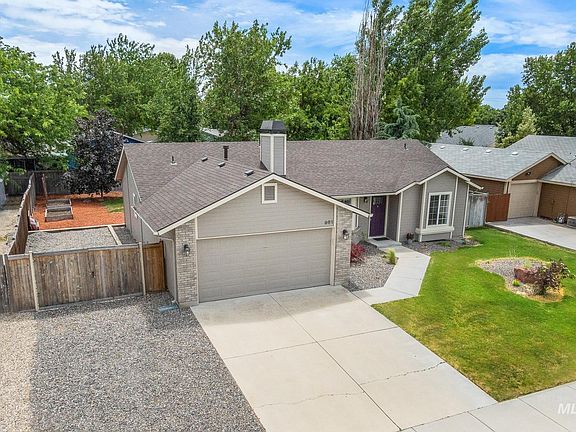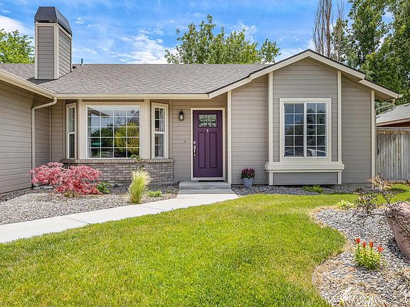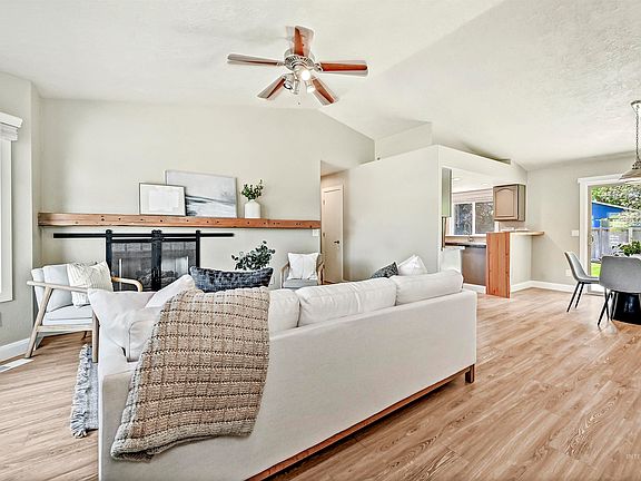 Meticulously maintained single-level gem nestled in the heart of NW Meridian! NEW LVP FLOORING JUST INSTALLED! Prime location near area schools, shopping and downtown. Set on a .20 acre lot, this home features 3 bedrooms, 2 baths and ~1244sqft with vaulted ceilings and an ideal split bedroom layout. Light and bright interior with gas fireplace and open concept living spaces. Renovated kitchen includes a waterfall edge breakfast bar, concrete counters and stainless appliances. Primary suite boasts direct access to the back yard + private ensuite bath with tiled shower and generous walk-in closet. Secondary bedrooms and updated bath allow for flexible living. Other notable upgrades include a brand-new AC and furnace in 2021, interior paint, garage paint and reinforced fencing. Attached 2 car garage with extended gravel parking area. Oversized yard with garden beds, irrigation and RV/boat parking with gate access! Buyer to verify all information.