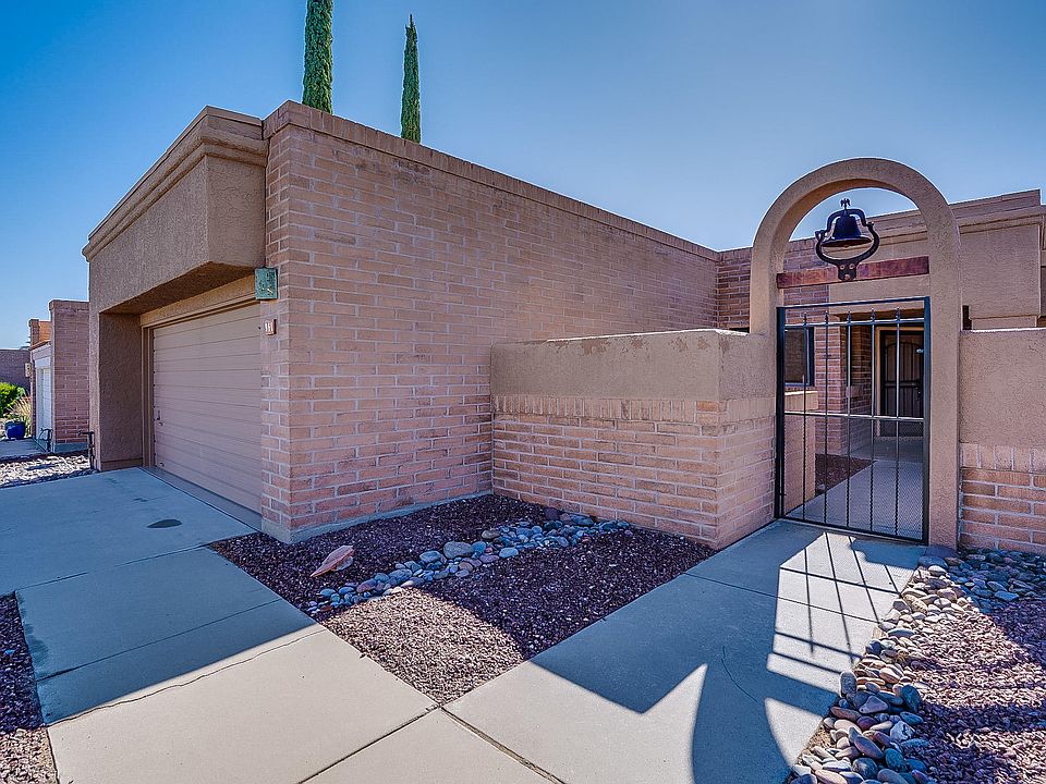 Impressive....MOVE IN READY, free standing home!! You will be greeted by a Grand Brass BELL!! Enter your private courtyard and then into your marvelous home, tiled great room with cozy wood burning fireplace. Kitchen features custom cabinetry and tiled counter-tops. New carpet and baseboards in bedrooms as well as new light fixtures in most rooms. Beautiful tiled walk-in shower in master bedroom. Finished 2 car-garage and extra storage room with epoxy flooring. Spacious back patio with epoxy flooring. Hurry this home is a GEM!!