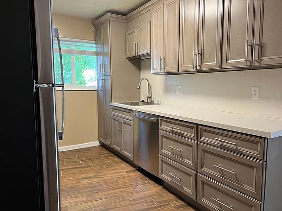ABOUT THE UNIT: Top Floor 1x1 of a 2-story apartment complex. Unit features an open layout living room leading into a renovated kitchen that includes a 5-burner stainless steel gas range, refrigerator, dishwasher, tank-less on-demand water heater, plenty of kitchen cabinets for storage, and high quality granite countertops. Other highlights include new hardwood laminate flooring throughout, brand new light fixtures, double paned windows, and an updated bathroom with recently installed vanity and walk in shower! ABOUT THE LOCATION: Half mile from MacArthur BART Station and freeway access to the 580/880/24. Steps from the commercial corridor on San Pablo Avenue to the west and short walk to Temescal to the east. Close to Safeway, Home Depot, Best Buy, Starbucks, restaurants, and so much more! LEASE TERMS: Rent: $1600 Deposit: $1600 Utilities: Tenant pays gas, electric, and water (all separately metered) Parking: off street spot available + $45.00 monthly Laundry: Shared On-Site Pet Policy: Cats allowed QUALIFICATIONS: 640+ Credit Score Minimum 2.5x Income to Rent Ratio Guarantors Considered No Prior Evictions