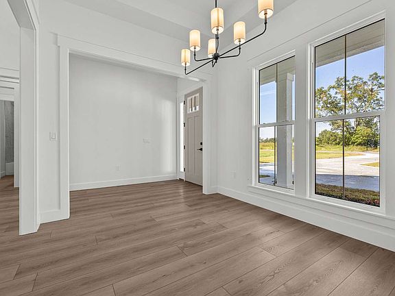The Cedar Point is a stunning farmhouse-style home offering 2,098 square feet of thoughtfully designed living space, complete with 4 bedrooms and 2.5 bathrooms and sitting on a spacious 1-acre lot. At the heart of the home, the spacious kitchen boasts a large island and flows seamlessly into the great room, highlighted by soaring vaulted ceilings. With plenty of storage in the walk-in pantry and a dining room made for hosting, entertaining is a joy. The primary suite is a private retreat featuring a luxurious en-suite bathroom with dual sinks, a water closet, soaking tub, separate tiled shower, and an expansive walk-in closet. The three additional bedrooms are equally inviting, sharing a well-appointed bathroom with dual sinks for added convenience. Designed with everyday use in mind, the mudroom connects the two-car garage to the laundry room and nearby half bath, keeping daily routines organized and efficient. Outdoors, a covered rear porch offers the perfect spot to unwind and enjoy the surroundings. Warm, welcoming color palettes throughout the home add to its timeless farmhouse charm.