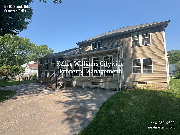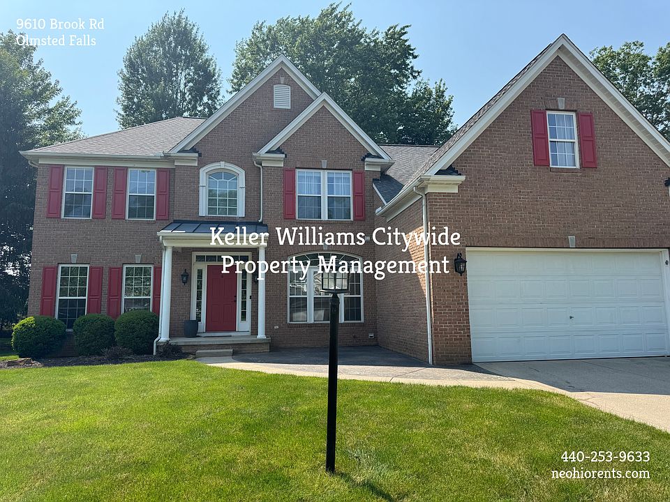 Welcome home to 9610 Brook Road, located in the highly sought-after Falls Pointe community in Olmsted Falls. This spacious and well-appointed home is available for immediate move-in and offers 4 bedrooms, 3 full bathrooms, 2 half baths, and a fully finished basement. The main level features a bright living room, cozy family room, formal dining area, oversized mudroom, and a morning room with access to the backyard patio. A dedicated office space adds flexibility for remote work or study. Upstairs, the primary suite includes a custom walk-in closet and a full bath with double vanity, soaking tub, and separate shower. Two additional bedrooms share a Jack-and-Jill bathroom, while the fourth bedroom features its own private bath. The finished basement adds even more versatility with space for a home office or additional bedroom, a half bathroom, ample storage or workout space, and a large open living area. This home offers comfort, functionality, and plenty of room to grow all in a desirable location. No smoking or housing vouchers accepted. Professionally managed by Keller Williams Citywide Property Management. Make this your new home today!