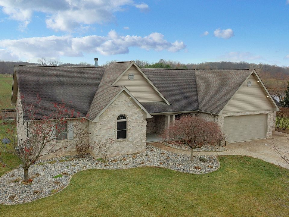 This ranch has it all! Over 3600sqft of total living space, with additional bedrooms in the lower level walkout, on a private 2 acre lot with uninterrupted views of farm fields. Oversized 3 car garage is uniquely arranged for a mechanic or hobby space complete with 220v, and water spigot. Inside the home, a tiled foyer welcomes you into the living space with vaulted ceilings and a natural fireplace. Large kitchen outfitted with a newer fleet of GE black slate appliances, full pantry, and ample cabinet storage flows nicely into living and informal dining. Master suite includes dual vanity, jetted tub, and new tiled shower fit for queen and king - dual rainfall shower heads plus traditional shower heads, custom tilework, and backlit niche. Newer flooring throughout each main floor bedroom. Also on the main floor is a half bath, full guest bath, and first floor laundry. In the lower level, space and storage abound. An optional 4th bedroom, and 5th bedroom/man cave flank either side of a large finished living space in the lower level walkout. The 5th bedroom/man cave abuts a storage/workshop room. The traditional 4th bedroom is near a full bathroom. Oversized utility room will be an excellent space for added storage. This home has been overbuilt and ready for a new loving family. The uninterrupted views out the rear of the home are serene, an adjacent pond to the parcel brings in tons of wildlife near; deer, turkey, pheasants, etc. Speaking of wildlife, ever thought about raising chickens? Completely closed in chicken coop measures 8x10 with a 10x30 run. Located on a paved road, fenced yard, and just 2.5 miles from downtown Durand.