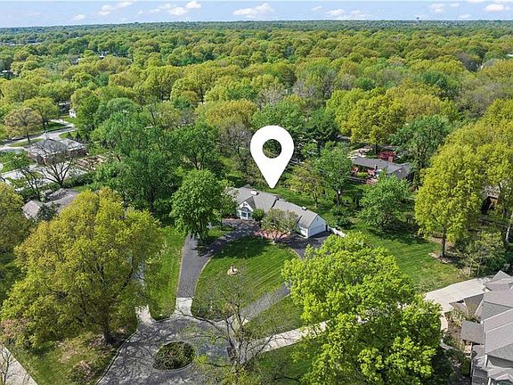 Situated on a 1.38-acre lot at the end of a quiet cul-de-sac stands this sprawling 3,340 sq ft Leawood home that has been artistically updated to create a sense of classic elegance, comfort, warmth and sophistication. This 1.5-story home offers 5 bedrooms, 4.5 bathrooms, multiple living spaces both inside & outside, primary suite options on the main floor or upstairs, window walls, double stairways, a lovely loft/sitting room, two fireplaces, a circular driveway, and fantastic curb appeal. The kitchen features stainless steel appliances, under cabinet lighting, custom bright cabinets, a charming bench breakfast nook, and an awesome baking area with third oven, prep sink, and storage space! The floorplan offers limitless possibilities, open areas that are great for entertaining and "getaway" spaces such as the library or upstairs reading area. The 5th bedroom on the main level makes for a wonderful home office or craft room. Spacious bedrooms on every floor, and a flowing layout. Pick your primary suite on the main floor or convert the upstairs bedroom with the fabulous sitting room into the perfect suite of your dreams! The two fireplaces have been professionally re-lined to allow a true wood burning fireplace in the living room and gas logs with convenient remote start in the "round" fireplace. You'll love sitting on the front veranda or grill out back on the large brick-covered patio while overlooking the panoramic tree-lined greenspace for complete privacy & peace. Incredible location near shops, restaurants, schools, parks, and highways. You won't find a better acre+ lot in highly sought-after Leawood Estates!