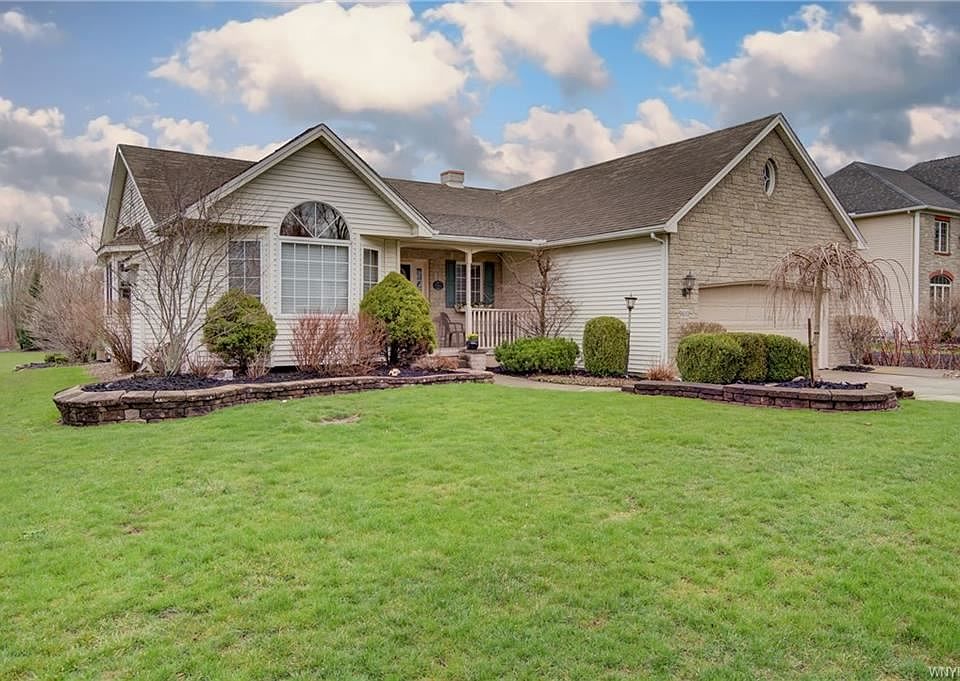 Enjoy the feel of country living in this great 3 bedroom 2 bath ranch! Concrete driveway leads to 2 car attached garage with overhead storage. Tiled entrance foyer welcomes you home and opens to custom kitchen with plenty of cabinets and counter space, breakfast bar and eating area. Formal dining and Comfortable living room with cathedral ceiling and gas fireplace. Peaceful master bedroom suite with walk in closet, double vanity, separate shower and soaking tub.Convenient First floor laundry, and full basement/rec room adds more living space with family room and entertainment area to watch your favorite sports team! Concrete patio with awning makes for great summer entertaining and watching the variety of birds who have also called this great house home!