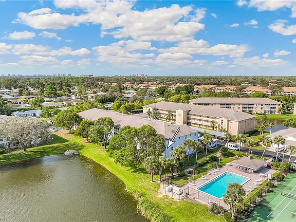 Spacious END unit with lots of windows and light, 2 Bedrooms & DEN (easily transformed into a 3rd bedroom) 2 full Bathrooms. Peaceful South facing lake view from large screened in lanai. Second floor (Elevator). Great view of pool from all bedrooms, Condo in Great location in North Naples and within Victoria Lakes. Rare vintage chic and retro aesthetic classic black and white checkerboard flooring on lanai and kitchen. Washer & Dryer insdie Condo. Common elevator available. Minutes to the beach, shopping and dining.