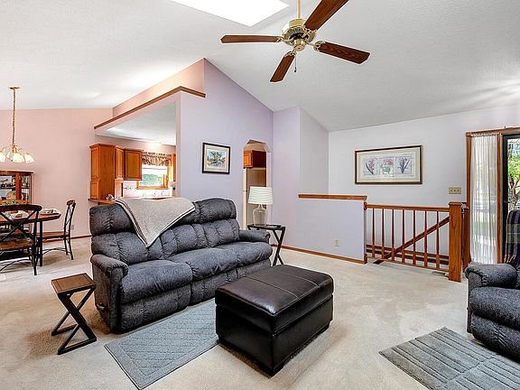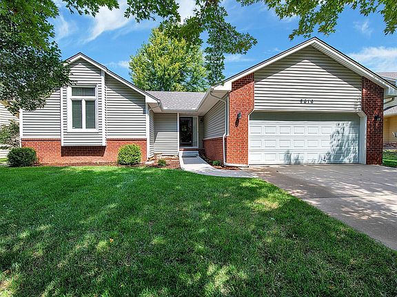 This is a very well cared for 1992 built ranch style home, in the Maize High School district. There is a large owners suite with a vaulted ceiling, walk in closet and en suite bathroom with dual vanities, quartz countertop, jetted corner tub, and a separate shower. The 2nd full bath services the other two main floor bedrooms and household. The living room has lots of light from two skylights. The kitchen is a good sized kitchen with a small pantry, an eating bar and lots of cabinets. The dining area adjoins the kitchen and living room, with an outside door access to the large wooded lot. The front and back yard have lots of shade and mature trees. The basement has a laundry/storage room and a fourth unfinished bedroom with daylight egress window, so making a fourth bedroom would be easy. The main upstairs living room has a gas log fireplace. There is a large rec room with a wood burning fireplace with a gas lighter, so it can be converted to gas. The basement has a very nice full 3rd bathroom. The home has vinyl siding with some brick in the front. The appliances stay with this home. This is a great house close to 21st and Maize, with lots of shopping, restaurants and fun things to do. This is about 15 minutes from Eisenhower Airport. Come check out this house and make it your home!