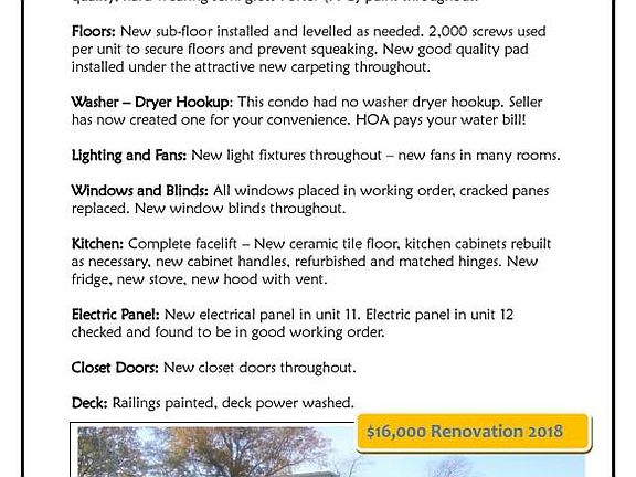 MAJOR RENOVATION APRIL 2018! See ''Major Renovation'' flyer in the documents section. Best unbeatable value for condo in entire east end. Seller has 2 units (#11 and #12) at 9610 Westport Rd. Like new - move-in ready! Complete kitchen face-lift w/new ceramic tile floor; many new appliances; new paint; new pad w/new earth-tone carpeting; new washer-dryer hookup; New light fixtures; new fan-lights; Largest units in complex. Extra bonus room. Best view in complex. Quiet back units. HOA PAYS WATER, HEATING, AIR CONDITIONING, MAINTENANCE, ETC! Save, save, save! East-end condo on Westport Rd. just west of Hurstbourne Pkwy, across the street from Kroger shopping center, restaurants, shops. Quick access to I-264 & 265. Springhurst is your neighbor. Close to down-town. HOA $308 per month.