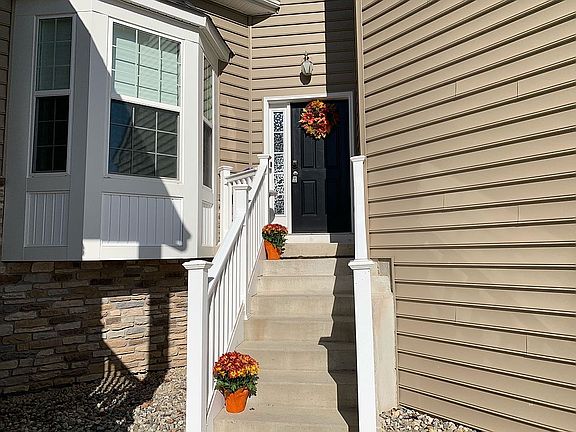 Welcome to this 3-year young updated home with 2500 sq ft of living space, uninterrupted views of rolling hills and upgraded finishes!! Situated in a great neighborhood & location, this beautiful home boasts an all white eat-in kitchen with granite counter tops, a 4-seat island with additional storage, stainless steel appliances (included), and vaulted ceilings. The 1st FL also comprises a 2-story foyer with updated luxury vinyl flooring throughout, open floor plan with extra large dining room ideal for entertaining, and sliding doors that opens up to a custom TimberTech deck wired for lighting (includes a pergola with washable shades). The deck stairs lead to a large flat backyard with new swing set and plenty of room for children to play (can be fenced). The 2nd Fl showcases a large master bedroom with his & her WIC, ceiling fan, and tiled en suite complete with standup shower, large soaking tub, water closet and dual vanity. The finished basement (May 2020) has new carpet, a large family room, play room, a new half bath (plumbed for shower), egress window, and ample storage. The oversized attached 2-car garage boasts 14ft ceilings with extra storage space above the vehicles. Gas heat, low maintenance/utilities costs including low HOA ($30/mon), and easy access to major highways & shopping make this a GREAT home!!