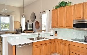 RARELY AVAILABLE 4 BR 2. 5 BA Verona B model. Elegant double door entry opens into foyer leading to large open floor plan with diag tile in all living areas. Custom kitchen with 42 wood cabinets & NEW top of the line SS appliances. Living room and family room sliders open to large screened patio with magnificent endless lake view. Master bedroom suite features his & hers custom walk-in Calif closets, & bathroom with dual custom wood vanities, separate shower & Roman tub with Jacuzzi. Fourth bedroom being used as den. New washer & dryer. Accord shutters. Generator. Furniture negotiable. Community offers resort style indoor and outdoor pools, cafe, state-of-the-art fitness center, har-tru tennis courts, professional entertainment. All dimensions deemed to be correct,but not guaranteed. $449.00