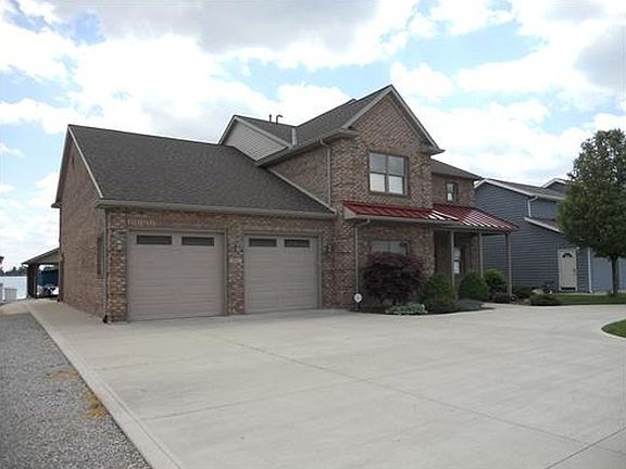 Recently appraised for $740,000! Come live the "island life" at Indian Lake! Nestled on beautiful Cranberry Bay, the water is calm and the view is fabulous! The quality of this custom-built 3200 SF brick home is TOP NOTCH. Features 3-4 spacious bedrooms, 3 full baths, 2-3 car attached garage, & covered boathouse with double electric lifts. You'll love the high end crown molding, trim, and gorgeous hickory cabinets (Amish built). Kitchen boasts beautiful granite counter tops, huge breakfast island, two pantries, stainless steel appliances, and room for a TV. Dishwasher and SubZero refrigerator match the cabinetry! Relax in the spacious master bedroom with endless water views, en suite bath with double sinks, and 11'x20' walk in closet. New master bath flooring coming soon! You'll appreciate the Pella windows, auto backup generator, reverse osmosis water system, concrete patio, & heated garage with 3rd door opening to the lake. Thick R-21 insulation keeps this home peaceful and quiet!