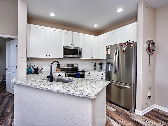 Better than new--an amazing amount of updates & upgrades in every room. Special touches and high-quality materials throughout make for a luxurious home. Superb location to the foothills, mountains, parks, boating, trails and all Colorado outdoors make the location unbeatable while enjoying low-maintenance living. Shopping & dining in walking distance. The updates include: all new luxury plank flooring throughout; new stainless appliances--stove, dishwasher, refrigerator, microwave; granite countertops in both bathrooms & kitchen with tile backsplash; new shower enclosures & flooring; custom trim design in second bedroom; custom tile trim on fireplace; cabinets in baths & kitchen; all new faucets. Even the handy computer niche in the dining area has a lovely granite top. Bright end unit has a balcony & sunny eastern exposure for all rooms. High ceilings & no neighbors above are a plus for this 3rd floor unit. The garage is just a short walk away. Storage in laundry room, garage & closet on balcony. This home has it all--great location, superb condition with latest trends in updating & renovating, very livable floorplan, light, lovely & open. All ready for the next lover of the Colorado Lifestyle.