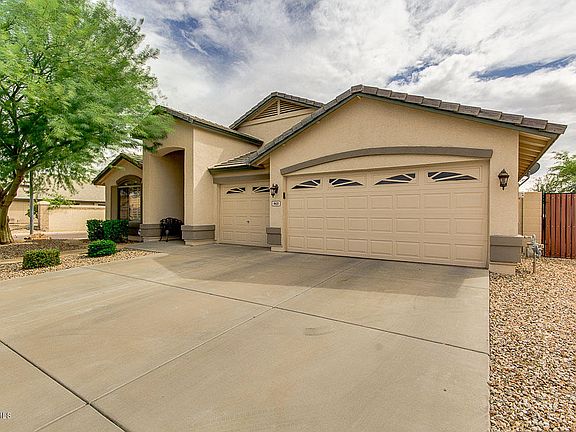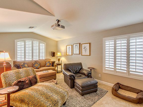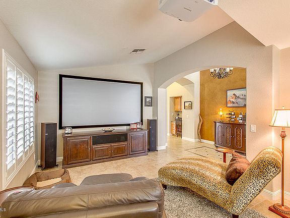 Impressive single story on corner lot! You will be WOW-ed as you walk thru this stunning home. Travertine-like tile thru most of home, plush carpet in bedrooms. Plantation shutters thru-out. Great Room displayed as media room, can be converted back to living rm & dining rm. Large eat-in kitchen features dual ovens, extra cabinets & counter tops, large island & enormous walk-in pantry. Large family room wired for surround sound (ceiling mount speakers convey). Enormous master bedroom suite w/remodeled master bath & huge walk-in closet. 4th Bedroom currently furnished w/built-in office, can be converted back by seller if requested. Amazing backyard w/built-in BBQ, sparking pool, green grass & BIG side yard for RV PARKING!! 3 CG has epoxied floor, built-in cabinets & work bench.