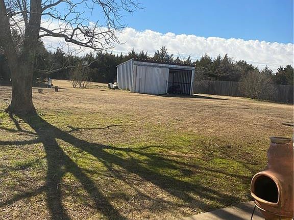 1.29 acres Not a mobile home with outbuildings and storm shelter. Master bed has a room connected that could be converted to a bath 0n suit, right now it has a half bath, it could also serve as a study or a nursery or gym. Please check the schools for accuracy. House is vacant go show! The garage looks like a 2 car but has a deep tandem side where two cars can park.
