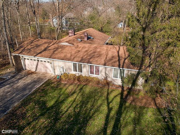 Looking for a secluded home that's close to town? Looking for a place where you can have your friends over to relax around the firepit? Looking for a unique home that's still affordable? Looking for a home that's well kept, but you can still make your own? This could be just the right home for you! You'll love the drive through the woods to get to your new home. The first thing you might notice is the brick with weeping mortar. It's such a distinctive look! AND it's brought inside to the brick wall that separates the hall and the living room and even goes downstairs to the fireplace wall there! The kitchen is spacious with plenty of cabinets PLUS a pantry. There's a brand new Bosch stainless steel dishwasher, Jenn-Air gas cooktop, Frigidaire stainless electric wall oven, GE refrigerator with freezer on the bottom, stainless GE Spacemaker microwave and even the Glacier Bay water cooler stays. There's even a skylight to keep the area bright and cheery! The living room and dining room are surrounded by sliders that lead to the wrap around deck and let the outside in! You'll love sitting inside or out and barely knowing the difference! The wood burning fireplace will keep you cozy when the winter gets cold and there are electric blinds with remotes to make your life easier! Hardwood floors through most of the first floor are great, too! There are 3 bedrooms on the main level. The primary is spacious with a dressing room/walk in closet and private bath with an easy enter shower. The 2 other bedrooms also have good space and share the hall bath, which has 2 sinks and a tub. The first floor laundry has a Maytag Heavy Duty stackable washer and dryer plus a handy sink, counter and cabinets. You'll enjoy the basement almost as much as the main level! The rec room has a wall of windows leading to the patio plus another wood burning fireplace. There's also a huge office/library/4th bedroom to use however fits your life, and a convenient half bath. Mechanicals are great! There's a newer Rheem/Richmond natural gas 40-gallon water heater, a Kinetico water softener system, Lennox AC System, and an almost new Generac natural gas 22K Generator 4-2021. The garage has a PorchLift wheelchair-lift and a LiftMaster garage door opener with keypad There's also a workbench and lots of storage. Your new home is wheelchair/walker accessible, too! The exterior has been recently painted and the landscaping has been well tended. You won't be too close to your neighbors, but so much of the land is wooded, the lawn is easy care! Zoned E1. Outbuildings allowed within the county's rules. Don't wait to make this home yours!