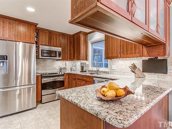 Office on main floor Meticulously maintained home, newer roof. All windows have been replaced, on demand hot water, partial sealed crawl space, updated kitchen and master bath. Oversized garage with extra parking pad Lovely & Bright Sunroom overlooks large, flat/ private back yard. Updated kitchen, combined with breakfast room & dining room make this floor plan great for entertaining. New stainless steel appliances.Prime Cary location access to shops, schools, restaurants, and parks.