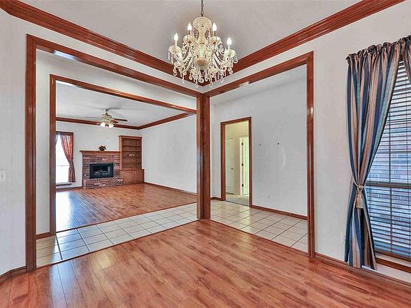 4 BED, 3 BATH, 3 CAR GARAGE: Open floor plan with living, dining & kitchen all open to each other and split floor plan bedrooms, 2 on each side of the home. The center of this home is its kitchen with beautiful cabinets, great counter space, pantry and eat in breakfast area. Formal Dining is steps from the kitchen; opens into the living room making the flow of entertaining guests and family seamless. Inviting Living area features a warm gas log fireplace, Builtin Bookcase, high ceiling, crown molding, ceiling fan, beautiful hard surface floor. Spacious primary Suite has ample space for large furniture & private exterior access door onto back patio, ensuite bath with double sinks, jet tub, separate shower, neutral ceramic tile & walk thru Australian closet. MIL 2nd bedroom has ensuite bath with shower and adequate closet space. Two additional bedrooms are spacious with nice sized closets and share a hall bath with tub/shower combo & neutral ceramic tile. All bedrooms have neutral carpet & paint. In home laundry has storage cabinets and a counter for folding clothes. Three car garage has shelving & tool storage area, in floor 6 person storm shelter & auto garage door openers. Updated HVAC (2017,) H20 (2020). Incredibly convenient location in a quiet cul-de-sac with no HOA. Nice backyard with wood privacy fence, covered back patio and no back neighbors. Easy access to major commuter roads, near Lake Hefner, plenty of restaurants & shopping areas. Putnam City Schools.